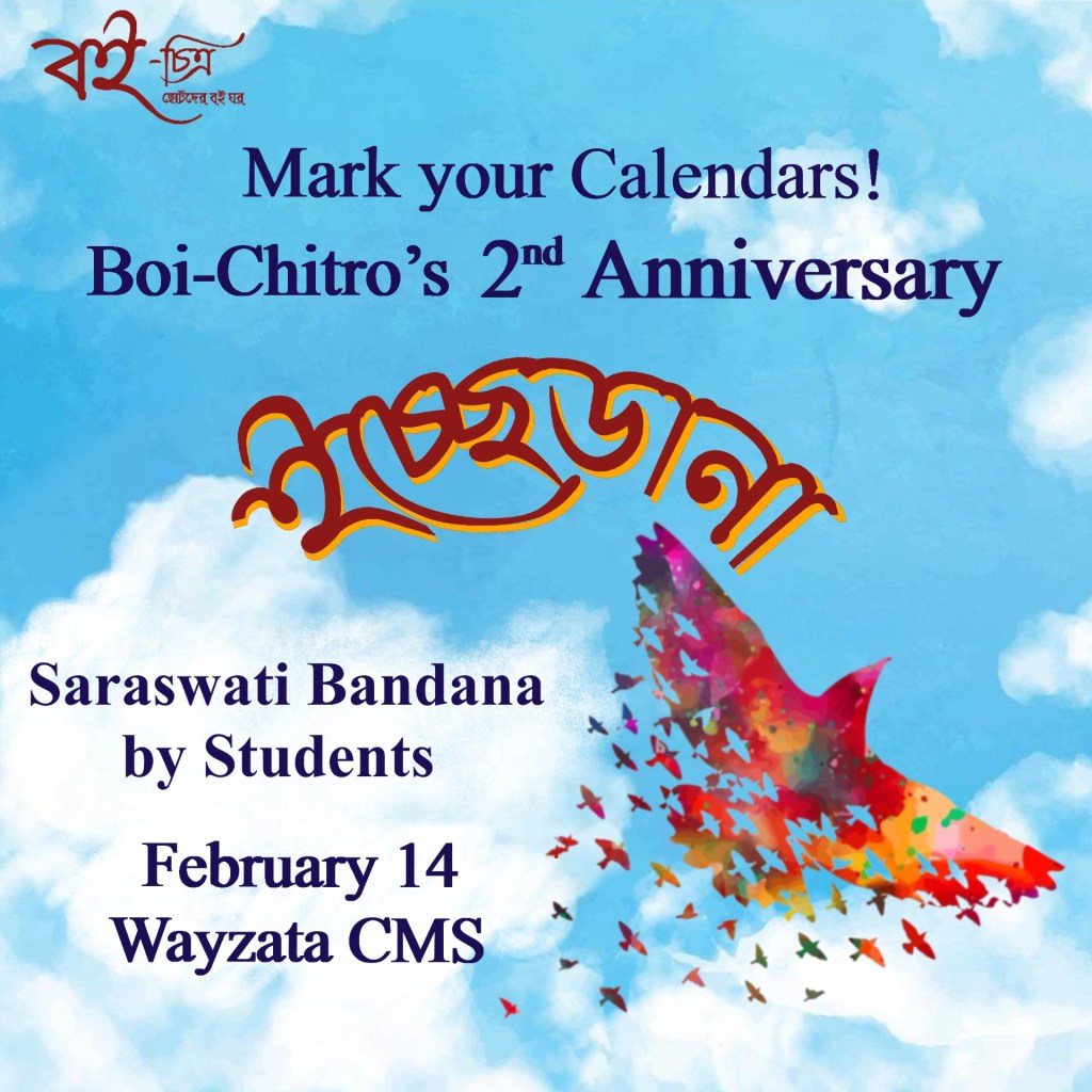 Boi-Chitro hosts in-person meetups for kids to connect among themselves to learn about Bengali culture, traditions and communicate among themselves in Bengali.